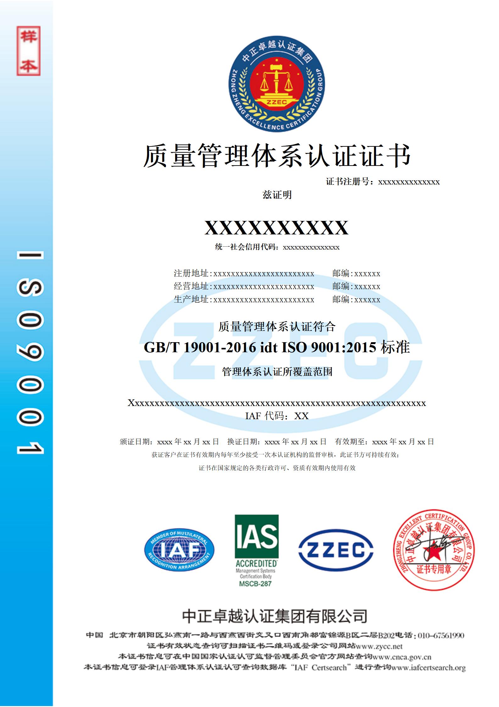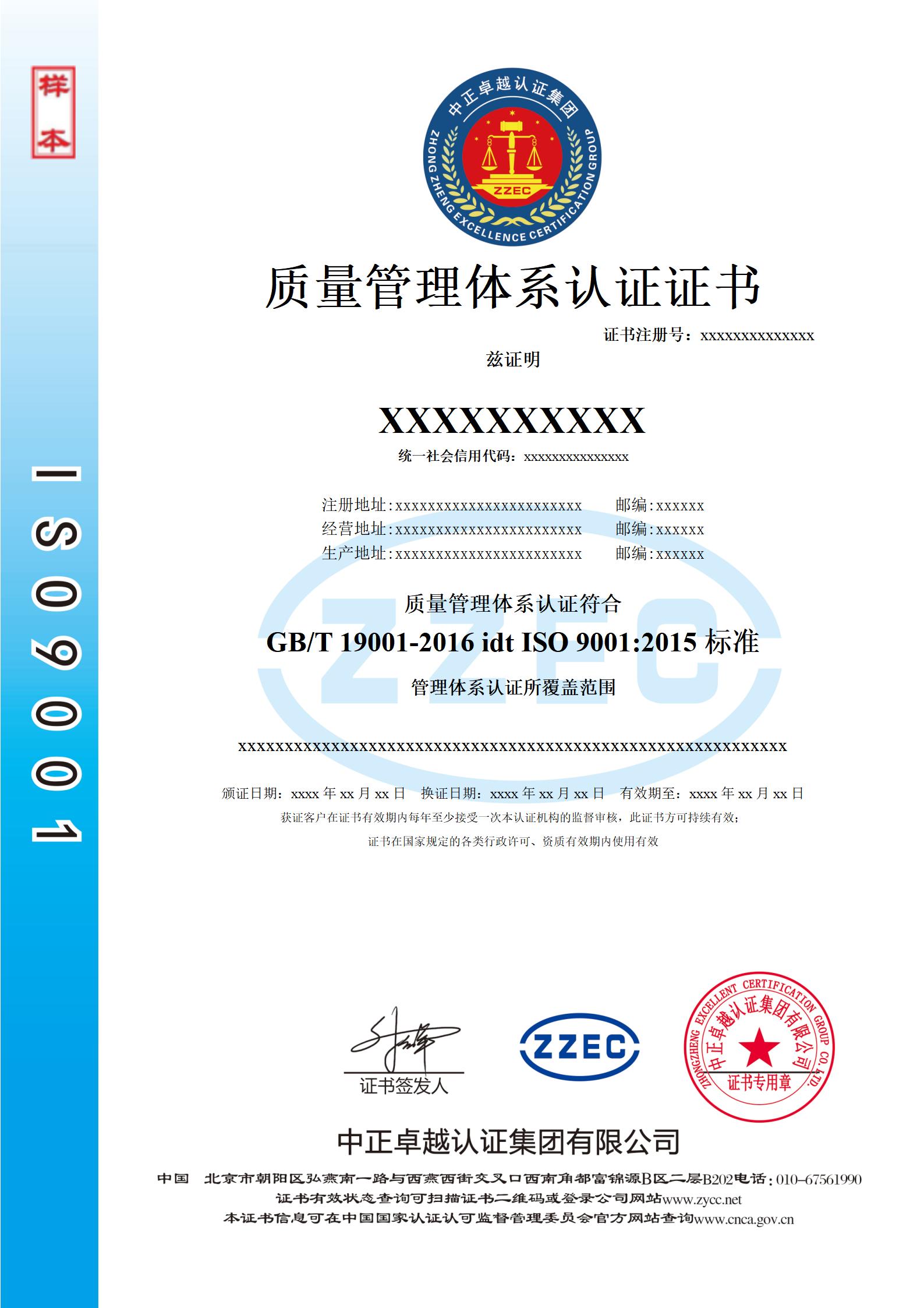 工程建設(shè)施工企業(yè)質(zhì)量管理體系認(rèn)證證書(shū)